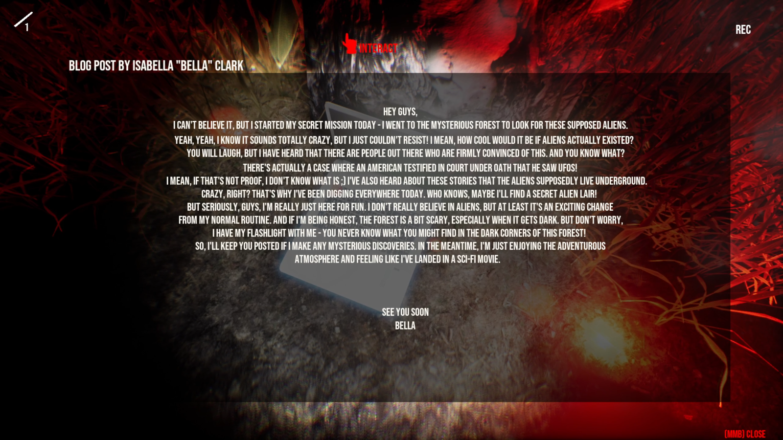 You play Max Walker, a young vlogger who visits Rendlesham Forest to explore the legends of UFO sightings. What starts as a fun adventure trip quickly turns into a nightmare.
